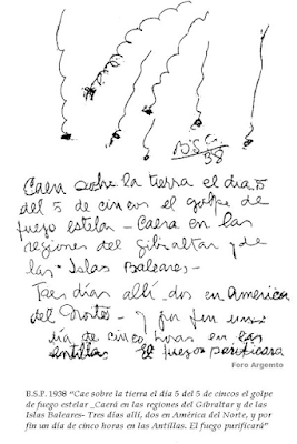 Los científicos consideran que una gran tormenta solar podría producirse entre enero y octubre (mayo queda en medio) de este año 2024, y el gran vidente argentino (ya fallecido) Benjamín Solari Parravicini, en MAYO de un año..., ¡indeterminado! He aquí una de sus sicografías-profecías pero en clave numérica que no es difícil de interpretar: "Cae sobre la Tierra, el día cinco, del cinco, de cincos, el golpe de Fuego Estelar; caerá en las regiones del Gibraltar y de las islas Baleares. Tres días allí, dos en América del Norte y por fin un día de cinco horas en las Antillas. El fuego purificará" (B.S.P. 1938)